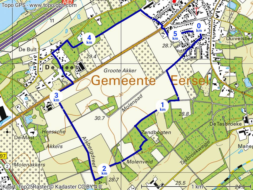 Als u samen met ons naar het startpunt rijdt vanaf het plein bij het gemeentehuis Eersel: